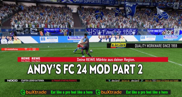 Andy’s FC24 Mod Part 2 New animated and static Adboards for the teams from the 1.and 2. Bundesliga in Germany, incl. DFB Cup, Supercup, UEFA Cups, incl. Banner, Flags, Scarfshttps://t.co/ou6zfuu56P