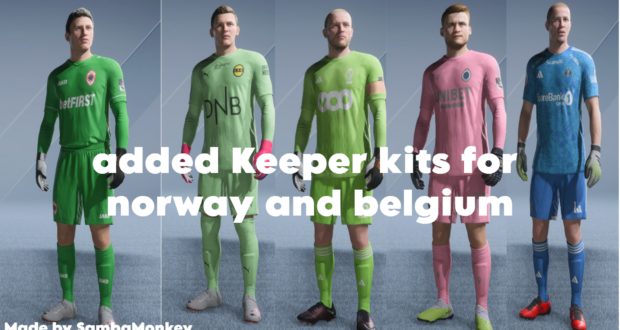 Oto modyfikacja dodająca do gry brakujące stroje bramkarskie dla drużyn z Belgi i Norwegii.