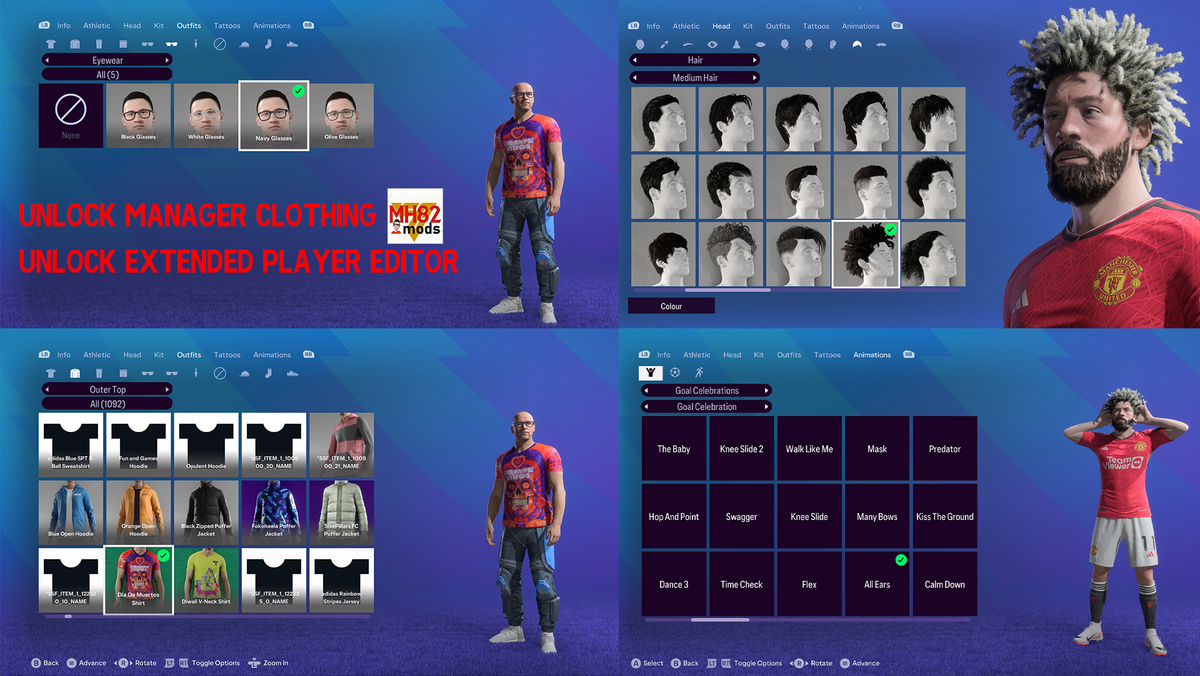 Link zawiera dwie modyfikacje, jedną odblokowującą nowe opcji edycji zawodnika. Druga odblokowuje dostęp do mnóstwa rozmaitych strojów dla menedżera.