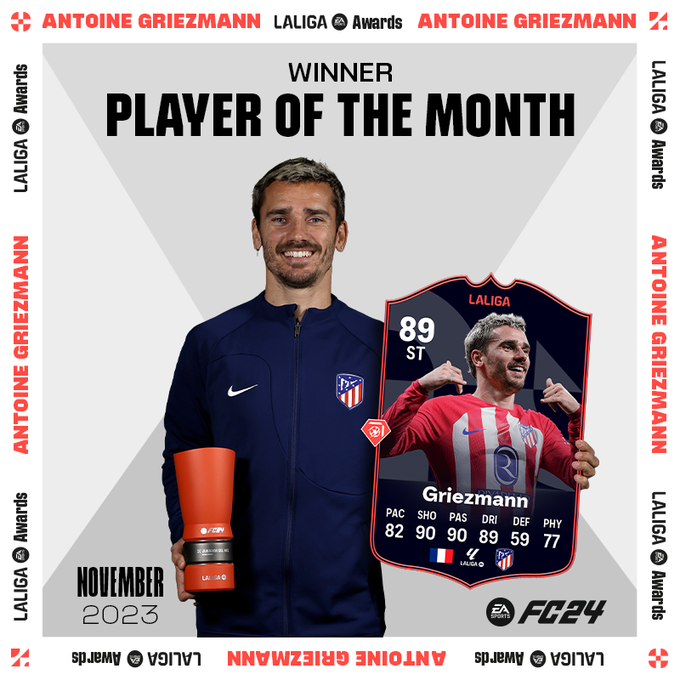 Piłkarzem miesiąca za listopad został napastnik Atletico Madryt, Antoine Griezmann! Francuz w listopadzie strzelił 2 bramki i zaliczył asystę na Hiszpańskich boiskach, za co został nagrodzony specjalną wersją.