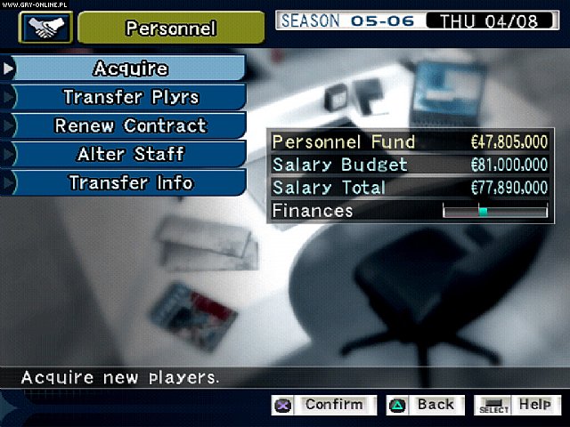 Choć gra oferuje tryb meczowy, jej główną ofertą jest tryb sezonowy, w którym możesz stworzyć swojego wirtualnego menedżera i przejąć rządy nad dowolnym klubem, który chcesz kontrolować – nie tylko w jednym sezonie, nie daj się zwieść kiepskiemu angielskiemu tłumaczeniu. W zależności od twojej reputacji, definiowanej przez ilość punktów chwały, które zgromadziłeś przez wszystkie lata w swoim save’ie, będziesz mógł zmieniać kluby. Oznacza to, że jeśli zdecydujesz się zacząć od przeciętnej drużyny z Eredivisie, nie spodziewaj się, że w najbliższym czasie zostaniesz menedżerem Realu Madryt. Jednak od razu zauważony zostaje kolejny poważny problem: możesz wybrać drużynę tylko z najlepszych lig Anglii, Francji, Hiszpanii, Włoch, Holandii i Niemiec – jedynych lig dostępnych również w PES5 – i tylko Eredivisie, Serie A i La Liga są licencjonowane, a to oznacza, że większość drużyn PESM ma nieprawidłowe nazwy i fałszywe odznaki/kity; dobrą wiadomością jest to, że wszyscy zawodnicy mają swoje prawdziwe nazwiska. Chociaż możesz kupić zawodników z drużyn nie należących do ligi, większość z nich jest nielicencjonowana, a ich zawodnicy mają fałszywe nazwiska. Wszystko to tworzy ograniczony wirtualny świat, który nie jest w stanie konkurować z bardziej rozbudowanymi symulatorami zarządzania piłką z PS2, takimi jak LMA Manager, nie mówiąc już o konkurowaniu z grą FM/CM. Tak czy inaczej, każda z dostępnych drużyn ma swoje własne cele na sezon, możliwości finansowe i talenty piłkarskie, więc pomimo niedostatku zawartości PESM, jest wystarczająco dużo indywidualności zespołu, aby przykuć twoją uwagę od samego początku.